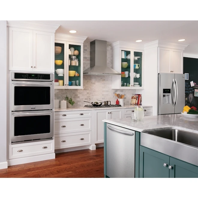 This 36″ range hood with stainless steel canopy is an efficient appliance which fits perfectly with any refined design kitchen. The centrifugal fan offers a choice of 3 speeds for a 400 CFM maximum air flow. This appliance comes with 2 dishwasher-safe aluminum filters and a built-in halogen lamp system which effectively illuminates your cooktop when you prepare delicious meals. This Frigidaire(R) unit is backed by a 1-year limited warranty on parts and labour.