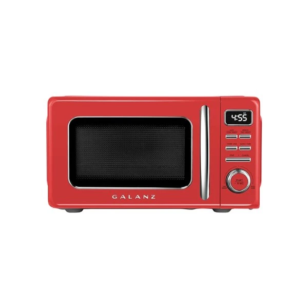 Galanz retro microwave oven offers a uniquely nostalgic style with its bright finish and chrome metal accents, adding style but still function in your modern kitchen. It is a fun and stylish addition to any kitchen, rec room, office or dorm room. This microwave makes cooking and reheating meals or beverages simple, quick, and convenient. With adjustable power levels, time and weight defrost programs and other functions, this microwave oven offers a variety of menu choices to complete your cooking tasks.