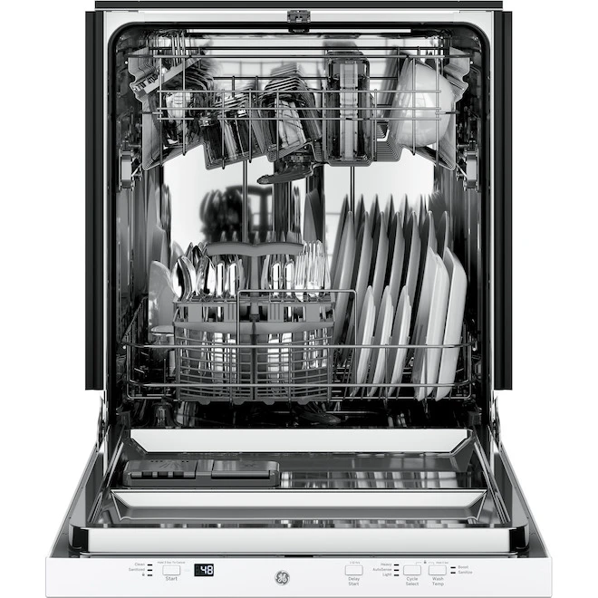 GE’s built-in dishwasher offers a fast and efficient clean every time! Thanks to the Pyranha hard food disposer there is no need for pre-rinsing or soaking, just fill the dishwasher and voilà. Offering 3 standards wash cycles, the 24-in 51 dB dishwasher also features the CleanSensor technology that automatically sets the length of the wash cycle according to the soil level and water temperature. The Sanitize option NSF-certified sanitizes using a high-temperature rinse to reduce 99.99% of bacteria from dishes. This product is backed by a 1-year limited warranty on parts and in-home labour.
