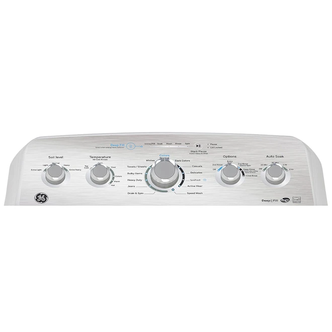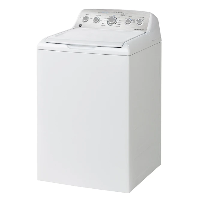 Make laundry day quicker and easier with the high-efficiency design of this GE 4.9 cu. ft. top load washer. Featuring a crisp white finish and a raised back control panel, this washer brings a fresh, contemporary aesthetic to your laundry room. Rotary-electronic knobs with LED cycle status lights add to the elegant design, while the 4.9 cu. ft. capacity offers impressive space for even your largest loads. Stainless steel tub resists rust and won’t chip for long-lasting durability, while preventing clothes from peeling or snagging. Speed wash cycle provides a quick cleaning process for smaller loads, and SaniFresh cycle uses a very high temperature water and a longer wash cycle to kill bacteria. Pump purge and extended rinse then removes remaining contaminants. The washer’s selection of 5 water levels lets you select the preferred load size. You can also use the washer’s built-in sensor to automatically fill the ideal amount of water needed. Deep rinse option eliminates soap residue and fabric softener for perfectly clean clothes.