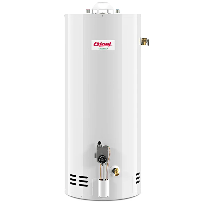 Ensure safe indoor heating by installing a Giant gas water heater. Its FVIR technology prevents the ignition of aerosol, solvents and vapours. 32000 BTU LowNox burners deliver pollution-free combustion. The residential water heater has a power twist baffle to retain more heat without increased energy consumption. An excellent magnesium anode enhances tank life.