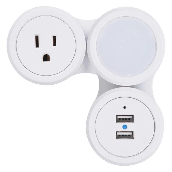 - Flexible wall tap with night light and 2 USB ports
