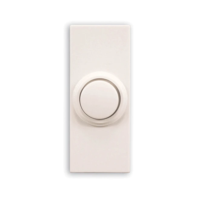 This white push button works with Globe wireless chimes. Made of durable plastic, it has a transmission range up to 150 ft and comes with a battery. 1-year warranty.