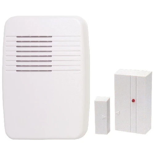 Plug-in entry alert. Westminster or 2-note melody will ring when sensor is tripped. Volume control. White color.