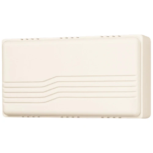 Basic white electric chime with fine flowing lines. 2-note melody for front entrance and 1-note melody for additional entrance.