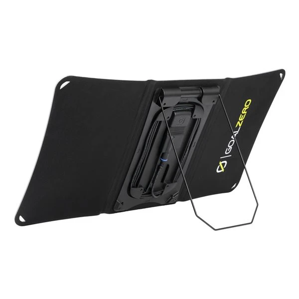 This 20-Watt foldable panel is durable enough for any adventure, yet sleek enough to fit in any pack or bag. Integrated cable storage, built-in flip dock, and an adjustable kickstand power small to medium-sized devices.