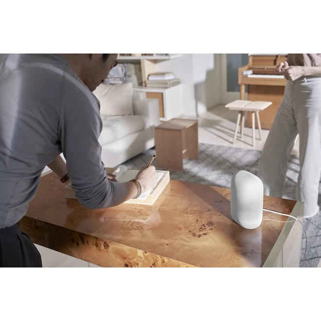 Google Nest Audio acts as a personal smart assistant. Controlled via voice commands or the Google Home app, it adds convenience to your everyday devices, or simply enhances the living experience at home. Google Nest Audio offers 75% more sound compared to the original Google Home. The speaker adapts to your room to provide a much clearer and cleaner sound. Say “Hey Google” to access the audio content of your choice and settings (pause, volume, next track). Listen to podcasts, turn on ambient music or play an audiobook; possibilities are endless! The speaker creates a complete sound system when combined with Nest screens, Chromecast-compatible devices, and additional Nest speakers (devices sold separately). Lights, thermostats and other smart items can be controlled from the speaker to give you the ultimate connected home experience (smart devices sold separately). Google Nest Audio is family-friendly, providing you with filters as well as parental controls and auto shut-off so you and your family can put tech devices aside when needed. Chalk colour model.