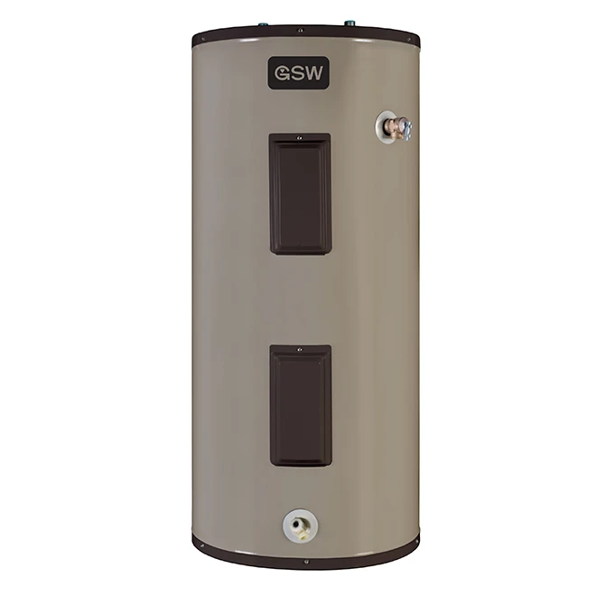Install this GSW electric water heater in your home for reliable, efficient water heating. This 40-gallon electric water heater features a pre-installed temperature and pressure relief valve for smooth performance. Its glass-lined tank with a magnesium anode provides a longer tank life, and its adjustable thermostat ensures an optimal temperature.