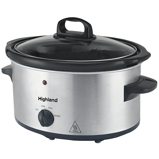 This Highland slow cooker is an affordable and ideal way to cook the food that requires long and slow simmering. Simply put in all the ingredients, select the right setting, and the cooker will do the work for you! The capacity is large enough to serve dinner for the whole family. High, low and keep warm settings. Tempered glass lid. Slide-proof rubber feet for more safety. Dishwasher-safe designed and removable stoneware inner crock.
