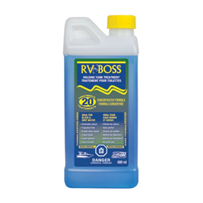 Holding tank liquid treatment (black and grey water) for boats and RV’s that eliminates odours instead of masking them with fragrances. Dissolves organic solids and paper, prevents build-up, cleans the holding tank and waste water levelling sensors. Formaldehyde-free. Economical and ecological. Does not cause damage to pump-out stations nor to environment. Boss products are used in several countries as an environmental alternative of choice in the treatment of waste water from agricultural, municipal, recreational and residential origin. 600 ml.