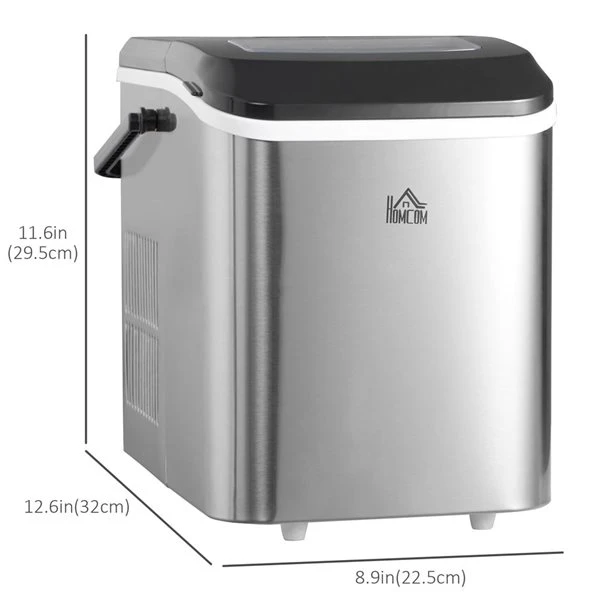Are you looking for an ice maker that can provide you with fresh ice all year round? This portable and compact ice making machine can satisfy your needs. It can produce 26 lb (12 kg) of bullet-shaped ice cubes per day, and there are two sizes of ice cubes for your convenience. This ice maker features a visible window to satisfy your curiosity about the ice-making process. You’ll never spend another summer again without refreshing ice with this HomCom ice maker.