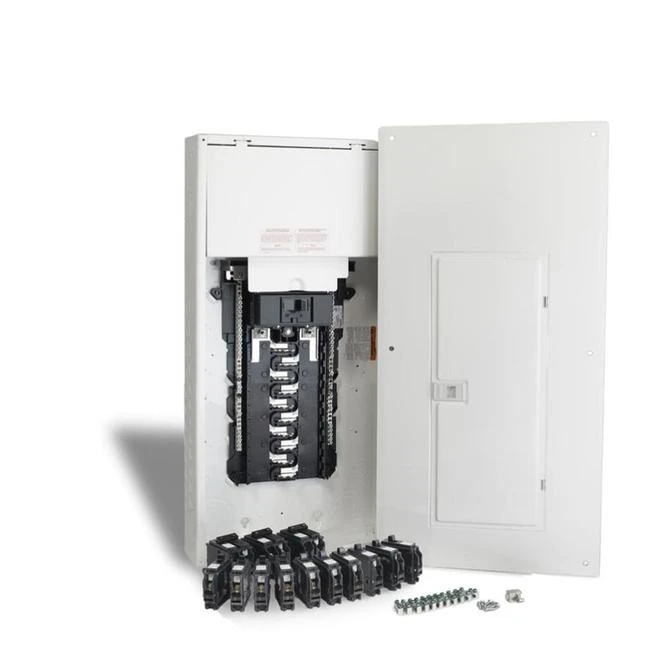 This panel package by HomeLine® comes equipped with a load center and breakers. It features multiple horizontal ground bar mounting locations (left, right and bottom) letting you pick the easiest spot to wire. This product comes complete with latch door on the trim. Distributed neutral with backed out screws reduces clutter and simplifies wiring. Breakers Included: 10-1pole 15a ,1-2pole 15a, 2pole 30a and 1 2pole 40a. CSA approved for vertical, horizontal or inverted mounting and suitable for Al/Cu conductors. Limited ten-year warranty.