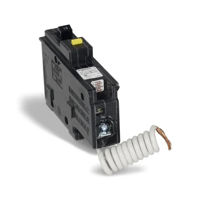 The HomeLine Ground Fault circuit interrupter protects people against electrical shocks. GFCI protection is required in wet or damp areas such as bathrooms, kitchens, garages, spas, pools and outdoor receptacles. Do not connect to more than 250 feet of load conductor for the total one-way run to prevent nuisance tripping. Use solid conductor only when #14 wire is used. Provides overload, short circuit protection combined with Class A ground fault protection. Class A denotes a GFCI that will trip when a fault current to ground is 5 milliamps or more. Yellow push to test button. CSA approved to only install in Canadian HomeLine Loadcentres.