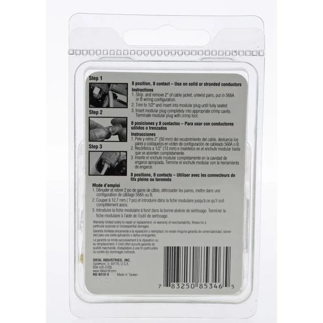 - Designed to work seamlessly with IDEAL Telemaster crimping tools, also compatible with industry standard modular plug crimping tools meeting specifications
