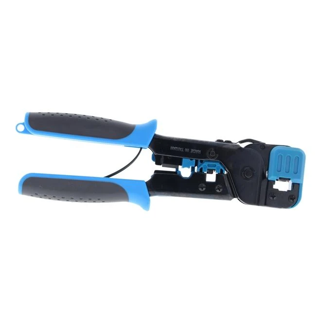 - Provides crimping of the primary RJ45 modular plug strain relief and plug pins