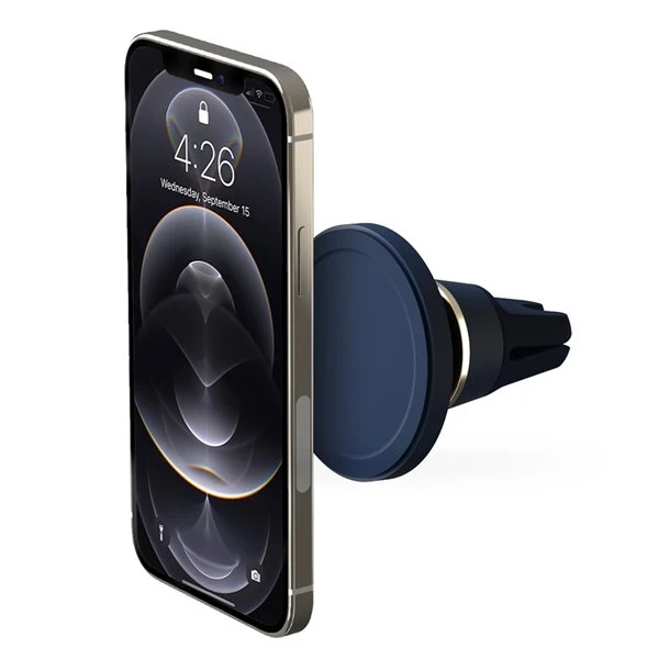 The Velox Air Vent Mount is a magnetic phone mount for MagSafe compatible iPhones and cases. Just place your device against the Velox Mount, and it will snap into place in perfect alignment for a secure hold. The Velox Air Vent Mount is easily installed by simply sliding the prongs onto the air vent blade where silicone grips prevent it from slipping. The ball joint on the Air Vent Mount rotates 360° allowing you to adjust the cradle for an ideal and safe viewing position while you drive. The siliconized surface provides a gentle touch that protects your iPhone from scrapes and scratches. Now it’s easier than ever to mount your phone and hit the road!