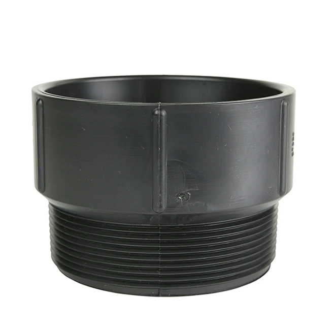 An ABS male adapter is used to convert a solvent weld pipe to a threaded connection such as a female fitting. This 4-in IPEX adapter connects to a female adapter when joining a pipe using a threaded connection.