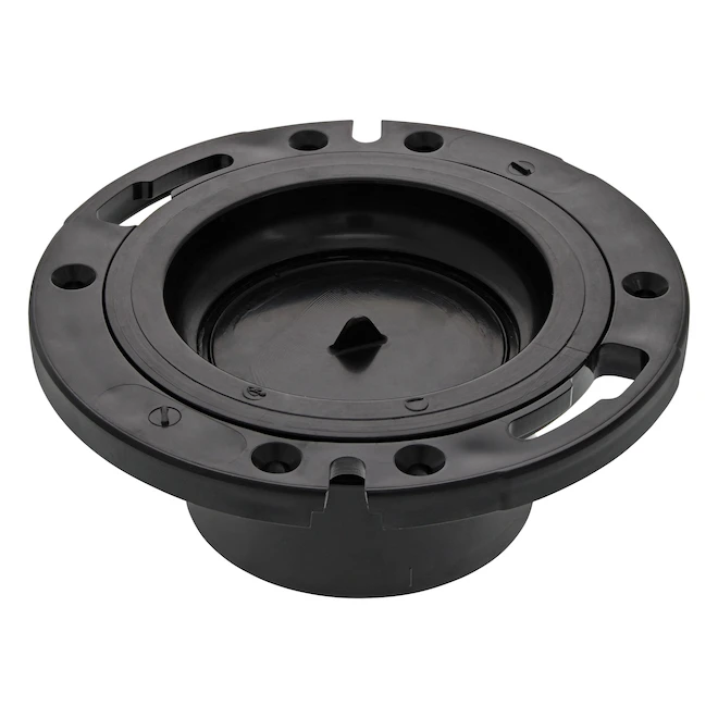 This black IPEX closet flange is 4 in x 3 in in diameter and will be easy to align accurately. It’s made of ABS plastic and will not rust.