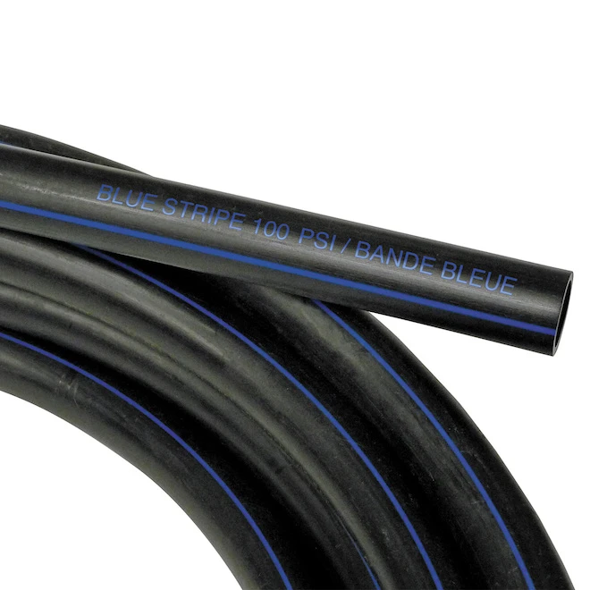 Standard serie polyethylene pipe, 1/2 in. X 100 ft., 100 PSI. Non CSA. Blue stripes.