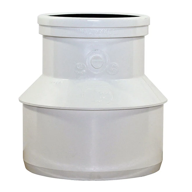 Install the Ipex reducer sleeve between two pipes to ensure a sealed system. It has 5 in dia for end one and 4 in dia the other end. The SDR 35 reducer sleeve abides by BNQ quality and conformity certifications. Made of PVC to ensure durability. This male to female sleeve comes in white colour.
