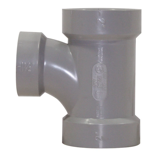 This sanitary tee from System 15 can be used for DWV systems in low-rise commercial buildings. It will allow liquids to drain while venting the plumbing system. This model connects a 1 1/2 in pipe to a 2 in drain/vent line.
