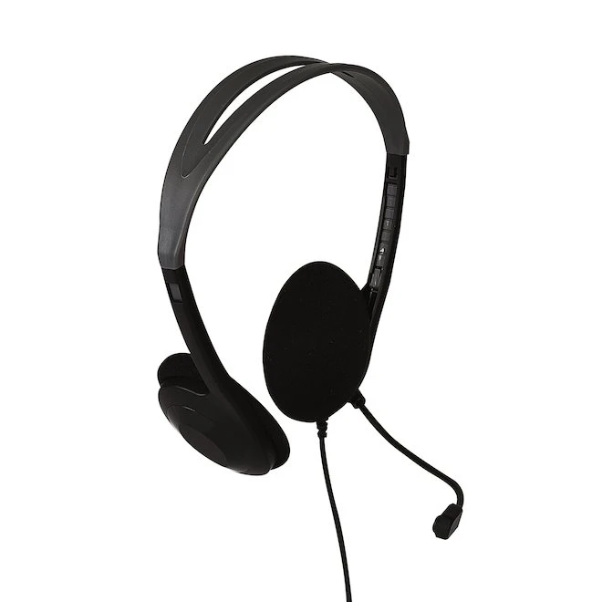 Jensen stereo headset with flexible rotating boom microphone and adjustable headband. Perfect for home, office and online school.