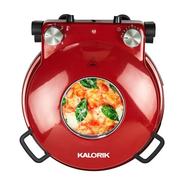 Authentic, brick-oven style pizza made at home in minutes with the Kalorik hot stone pizza oven. The dual heating elements and built-in baking stone guarantee a crispy crust and perfectly melted finish every time. From Chicago style deep dish to classic New York thin crust, the adjustable temperature control provides a variety of pizza types to try. Capture the brick-oven pizza experience right in your kitchen with the Kalorik red hot stone pizza oven.