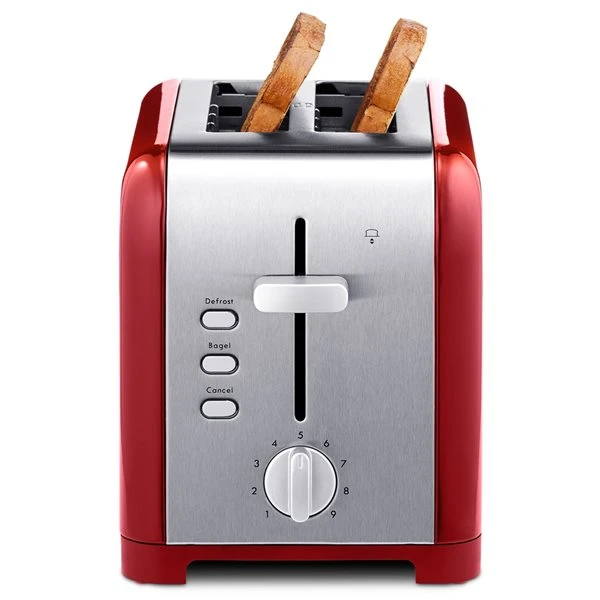 Toast or defrost your way to a delicious healthy breakfast with this 2-slice stainless steel toaster from Kenmore. With extra-wide slots and self-adjusting bread guides, this toaster accommodates everything from English muffins to Texas toast, and the easy-to-use controls offer 9 shade settings plus built-in bagel and defrost functions so you have plenty of options to suit your family’s individual taste.