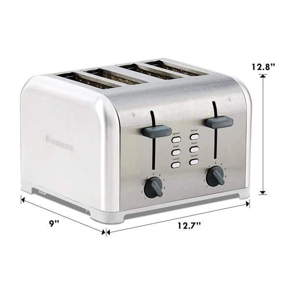 Simplify your morning routine with this contemporary style stainless steel 4-slice toaster. With dual controls and multiple settings, you can customize toast, bagels, waffles, and more exactly to your liking. From English muffins to Texas toast, this 1400 W toaster accommodates everything with its extra-wide slots and self-adjusting bread guides. The numbered dial offers 9 shade settings so you have plenty of options to suit your family’s individual taste.