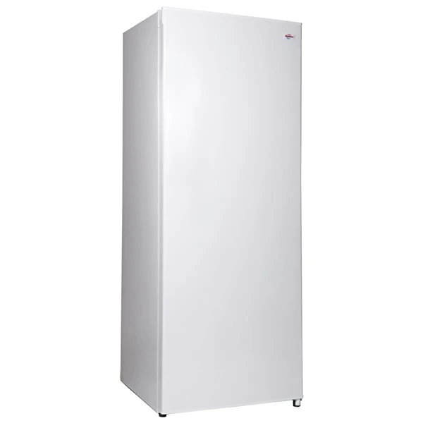 This slim-profile upright 150 L / 5.3 CF freezer is ideal for basements, laundry rooms or apartments. Four fixed wire shelves let you organize contents for easy access and the smooth back fits snugly against a wall. Reliable and efficient CFC-free compressor cooling keeps contents between 0°C and -24°C (32°F and -11.2°F) and the magnetic door seal keeps the cold inside where it belongs.