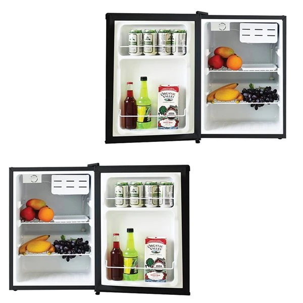 This compact black mini fridge with half-width freezer compartment is the ideal office or dorm room accessory. With space-saving flat back design, adjustable legs, removable wire shelves, and reversible door this fridge is customizable inside to easily fit wherever and whatever you need. Efficient, reliable compressor technology keeps contents at your desired temperature between 28°F (-2°C) and 50°F (10°C) and magnetic door seal keeps the cold inside where it belongs.