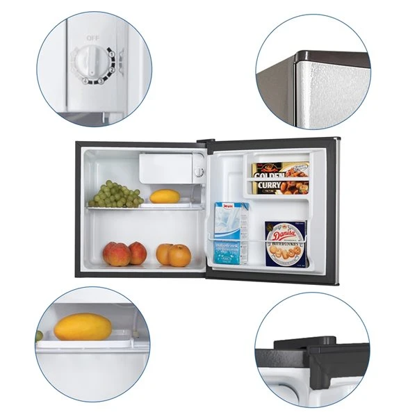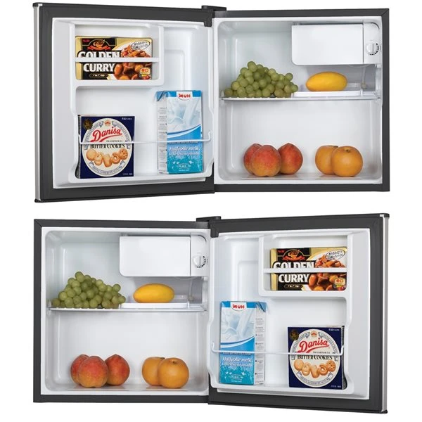 This modern-look stainless steel mini fridge with freezer compartment is the ideal office or dorm room accessory. Space-saving flat back design, adjustable legs, and reversible door let this fridge fit easily wherever you want it and efficient, reliable compressor cooling technology with adjustable temperature keeps contents at your desired temperature between 28°F (-2°C) and 50°F (10°C).