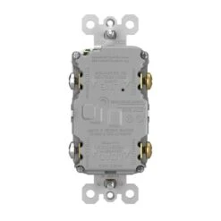 - Prevents line-load reversal miswire: no power to the face or downstream receptacles if wired incorrectly