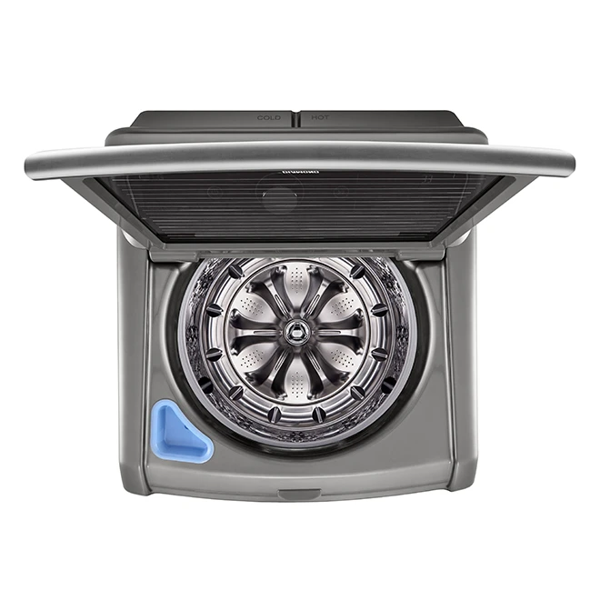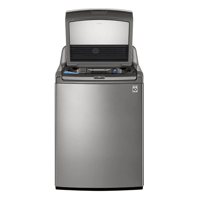 Large capacity, multiple features, advanced results, the LG TurboWash HE top-load washer has everything you are looking for when it comes to in-depth fabric cleaning. The drum and pulsator feature the TurboDrum Technology, spinning them in the same direction or in opposite directions to create powerful water currents for your clothes without damaging them. The TurboWash option saves you up to 30 minutes per load, the perfect option when you are in a rush. Then, the 6Motion technology ensures optimal washing efficiency with 6 different spin movements (950 RPM maximum speed). The 14 wash cycles include high-efficiency and delicate fabrics, and amongst others, the Allergiene steam cycle certified by Asthma Society of Canada. If you are a looking for a new app, this washer also features the SmartThinQ Technology, which provides Wi-Fi connectivity to remotely control settings from your smartphone. With a capacity of 6 cu ft, you won’t ever have to worry about putting too many garments in your load. Dimensions: 27 in x 44.4 in x 28.35 in. It is backed by a 3-year limited warranty on the drum and a 10-year limited warranty on the DirectDrive motor.