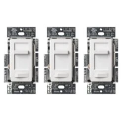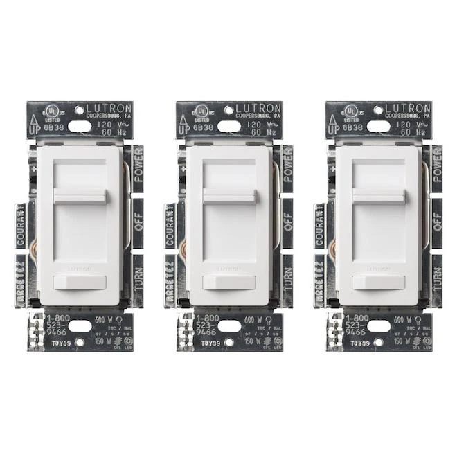 Incandescent dimmer provides over 250 lighting levels so you can create the perfect light for any activity. Works with up to 150-Watt of dimmable LED/CFL bulbs or 600-Watt of incandescent/halogen bulbs. Can be used in single-pole or 3-way applications, where lights are controlled from one or two locations. Rocker switch turns lights on/off to favorite light level. Captive slider dims and brightens the lights. Installs in as little as 15 minutes in homes of all ages – no neutral required?. Includes (3) Diva LED+ Dimmer Switches; coordinating wallplate(s) sold separately