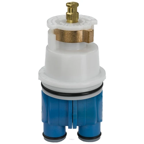 Use this Delta shower cartridge to repair worn or leaky 1300 and 1400 series Delta shower controls. Convenient front installation means there’s no need to access the back side of the shower wall. The Delta faucet cartridge combines hot and cold water controls into a single unit. A built-in rotational limit stop enhances bather safety by restricting the maximum temperature of the water that reaches the shower head. The valve design of this Delta bathroom faucet cartridge also minimizes temperature changes caused by pressure fluctuations in building plumbing systems. Running dishwashers and flushing toilets have a negligible effect on shower outflow temperatures.