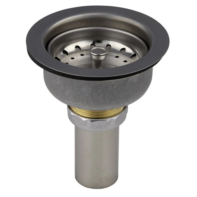 This complete kitchen sink strainer is made of stainless steel and includes the tailpiece. This unit measures 4,5 in.