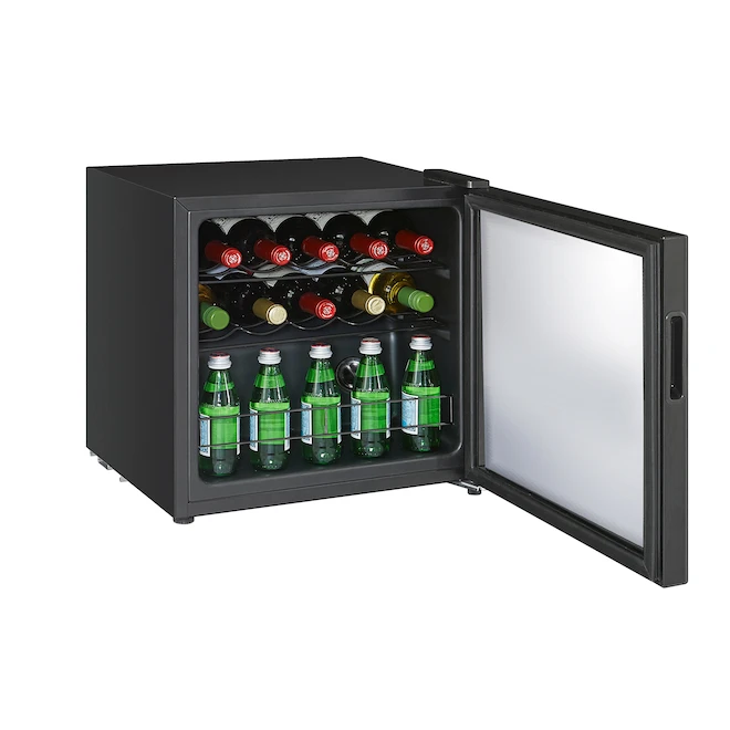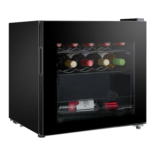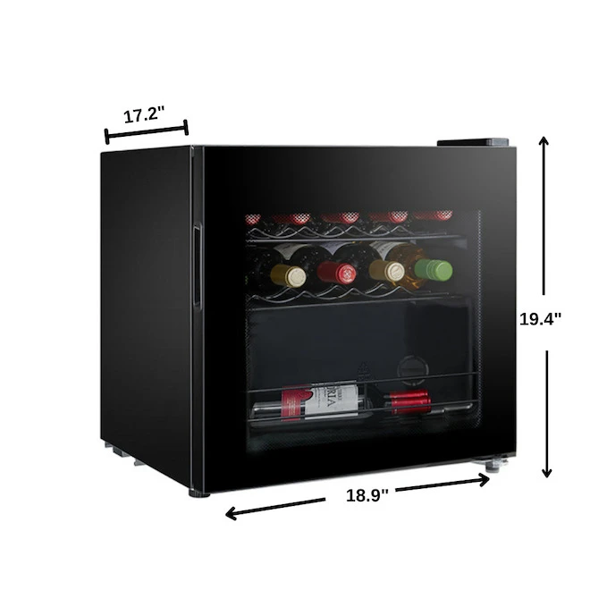 The Midea 14 bottle wine cooler offers a streamlined chilling unit that can store each bottle at optimal temperature for maximum enjoyment. Compact and stylish, this sleek black beverage cooler is great for bars, basements, outdoor kitchens or for supplementary drink storage in your kitchen. Keep everyone happy by having plenty of their favorites chilled drinks.