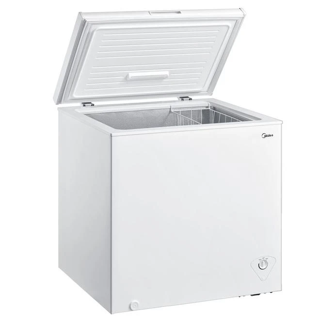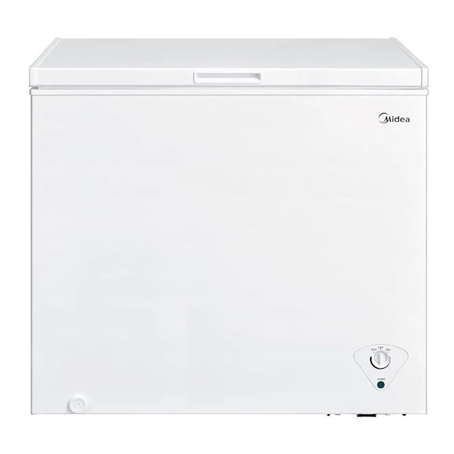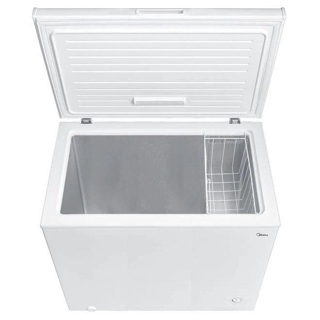 The Midea chest-style freezer helps free up considerable space in your refrigerator and represents a simple and inexpensive storage solution for frozen bulk foods. The thermostat offers adjustable temperature settings between -12 °C and -28 °C, depending on the items you wish to store. The base includes adjustable feet, so you can safely install the unit on uneven floors. Organize smaller items in the built-in basket, which can also be removed to maximize storage space.
