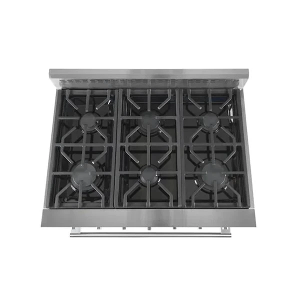 - 6 Burners featuring high power 18,000 BTU and low power 6,000 BTU German engineered single-stack burners