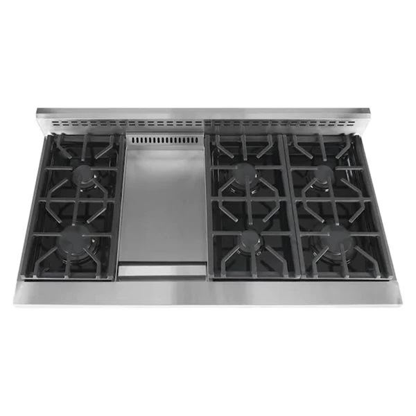 - 6 Burners featuring high power 18,000 BTU and low power 6,000 BTU German engineered single-stack burners
