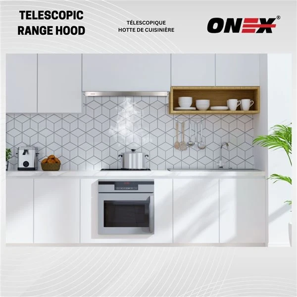 - DISHWASHER SAFE aluminum mesh filter: ONEX® range hood comes with aluminum mesh filter that are easy to pop out and can be places in the dishwasher for easy cleaning