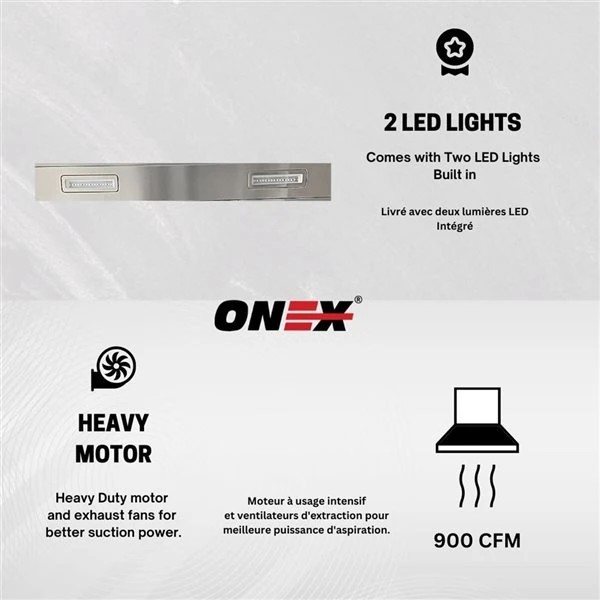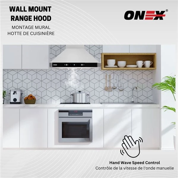 Premium quality Range Hood with 900 cfm airflow, 3 speed fan, Powerful Motor, 30-inch duct able range hood will quickly ventilate your kitchen and keep the noise level as low as 52 dB to bring you an amazing cooking experience. ONEX range hood comes with three baffle filters. The baffle filters are easy to pop out and can be places in the dishwasher for easy to clean. Our baffle filters trap smoke and cooking grease/oil efficiently. Leaves your kitchen clean with fresh air. Easy to use push-button control panel makes it extremely easy to operate for anyone. ONEX offers heavy-duty fans with Three Speed control for every kind of cooking. It is suitable for different cooking methods. Comes with 2 x 2 W LED lights to make your cooking area brighter. ONEX made it extremely easier for you to control the fan speed by just waving your hand in front of the control panel.