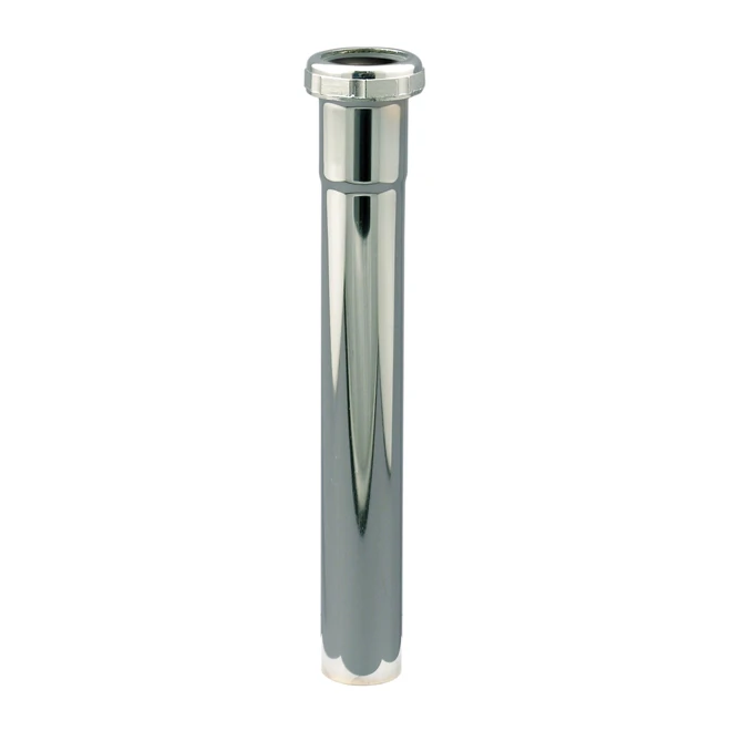 The extension tube’s dimensions are 1.25-in x 12-in long and is used for drainage in the bathroom. It is constructed of 22 gauge chrome plated brass and includes all necessary nuts and washers. The tube slip joint connects.