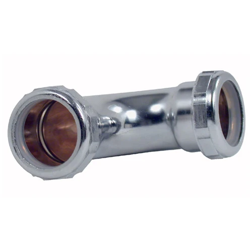 This Plumbpak elbow is a great choice for angled slip-joint style connections with your plumbing project. It is constructed of 22 gauge brass for durability and rust resistance. The chrome-plated finish easily complements existing fixtures. The 90° elbow has 1 1/4″ x 1 1/4″ dia. ends and is easy to install.