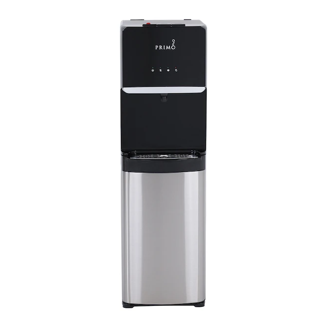 Get the convenience of a water dispenser without any of the heavy lifting. The Primo® Deluxe Bottom Loading Water Dispenser has a discreet and modern bottom-loading design that eliminates lifting and risk of spillage, while still providing easy access to piping hot, refreshingly cold or room temperature water at the push of a button. Updated with a new Lowe’s-exclusive look you won’t find anywhere else, this versatile stainless steel dispenser is made with everyday practicality in mind thanks to features like a child-safety lock, a removable dishwasher-safe drip tray, LED indicators and quiet heating and cooling. Easy, no-plumbing installation makes it the perfect fit for offices and homes of all sizes. To use, simply slide any compatible 3- or 5-gallon jug into the dispenser cabinet, then let it do the rest as it heats and cools your water to the perfect temperatures. Visit Lowe’s to find convenient, great-tasting Primo® Pre-Filled Exchange Water for your dispenser. Primo® Pre-Filled Exchange Water is purified with a 9-step reverse osmosis process to ensure pure drinking water that’s free of contaminants, while our environmentally friendly bottles are thoroughly inspected and sanitized after each recycling. Stay hydrated and sip happy with better quality water.