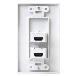 This dual HDMI wall plate offers an in-wall connection to high definition HDMI cables. You get a high-definition 2160p – 4K video and digital audio signal. In addition, it supports 3D, ethernet and audio return channels.