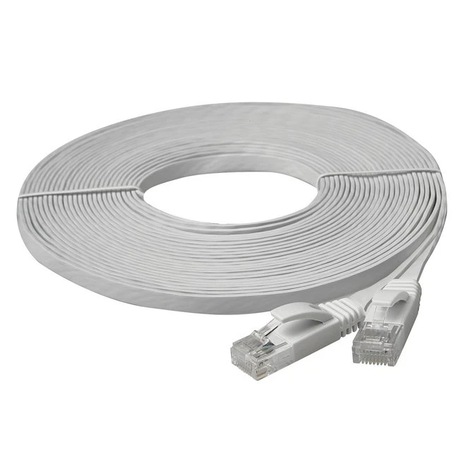 The 50-ft CAT6 flat network cable by RCA supports up to 250 MHz, 1000 Mbps and 1 Gbps. The cable will connect easily an internet-enabled device to a network. The flat cable provides more consistency in the electrical equality of conductors and are great for installations.