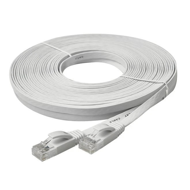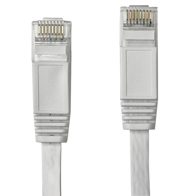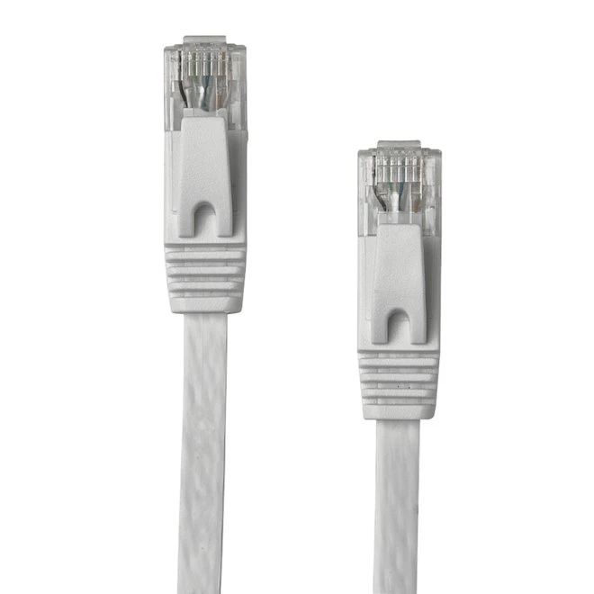 The RCA 25-ft CAT6 flat network cable will connect an Internet-enabled device to a network. This flat cable will provide more consistency in the electrical equality of conductors and is great for an easy installation.