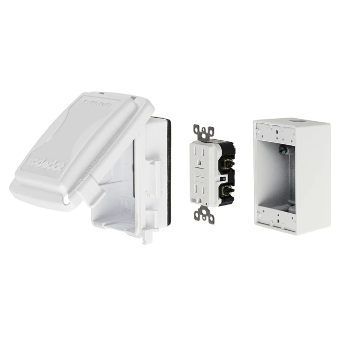 This white metal while-in-use cover kit features a robust stainless steel hinge pin / ideal for high-traffic areas. One cover handles GFCI, single, duplex or switch configurations. Red Dot Code Keeper extra-duty nonmetallic weatherproof while-in-use covers make it easier than ever to comply with Canadian Electrical Code (CEC) requirements for receptacles in wet locations.